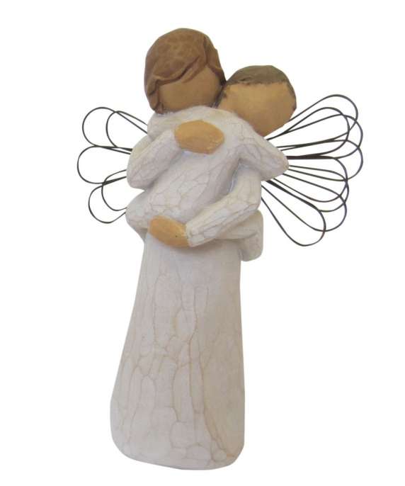 A Willow Tree “Angel Embrace” Figurine and a floral bouquet to take home.